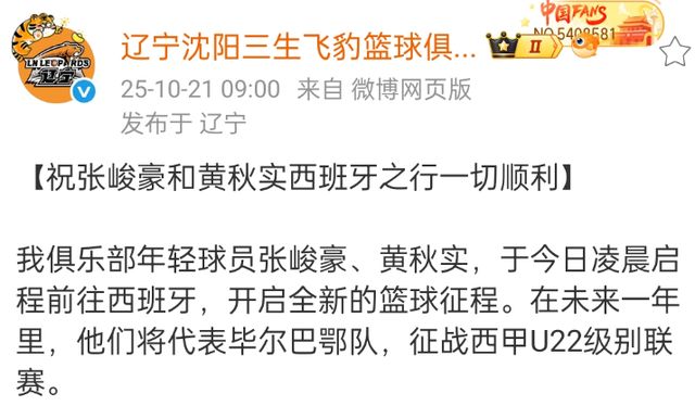 由于被禁赛三年,张峻豪和黄秋实的去向一直被球迷关注,之前传闻很多,但最终辽宁男篮还是帮助他们联系到了西班牙毕尔巴鄂竞技男篮,由于加盟西班牙球队必须要澄清信,所以两位年轻人也算是正式离开辽宁男篮。