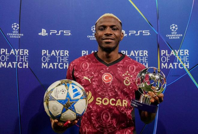 此役客场对阵阿贾克斯,奥斯梅恩上演欧冠生涯首次帽子戏法,并当选欧冠官方全场最佳球员。