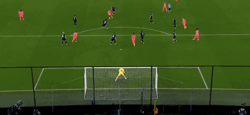 巴萨气势如虹,杀得兴起,10名球员都压过半场。第16分钟,布鲁日打出经典的快速反击,从本方禁区大脚解围到进球,全部都是一脚传球。