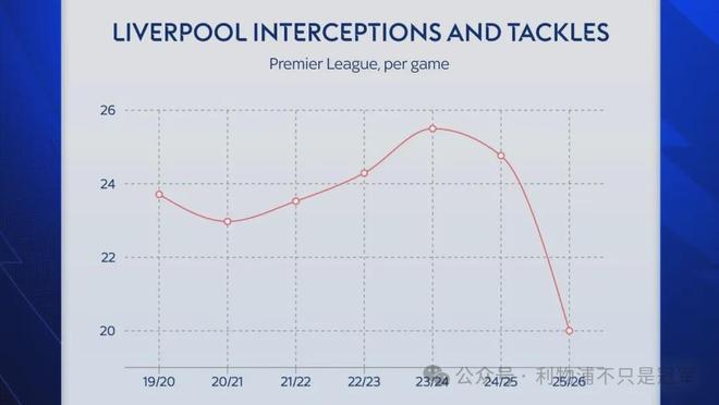 本赛季利物浦的场均拦截和抢断数据明显低于此前6个赛季。