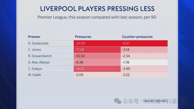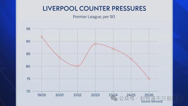 当然也应该看到,利物浦就地反抢数据的下滑,与目前英超更多球队采用长传避开利物浦反抢的战术有关,但天空体育指出,利物浦就地反抢数据的下滑,超过了英超各队的平均值。
