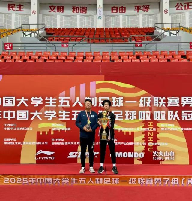Q:帮助湖南师范大学男足获得获得全国大学生五人制足球一级联赛南区(简称:大五南区)冠军,心情如何?
