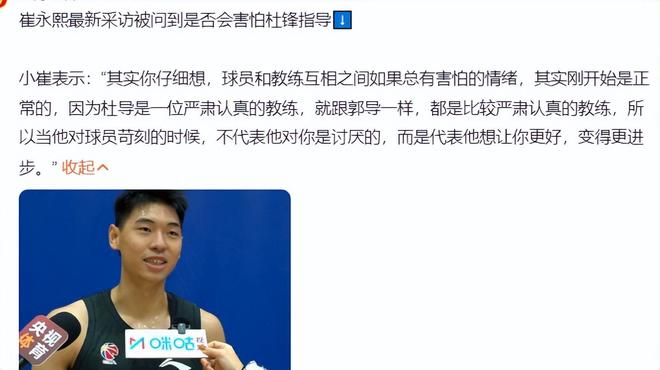 崔永熙也谈到了杜锋、杨瀚森等人的话题,但他最多的还是谈自己身体情况,他表示自己会努力康复争取赶上CBA新赛季的第一场比赛,他还表示一开始害怕杜锋指导属于正常情况。