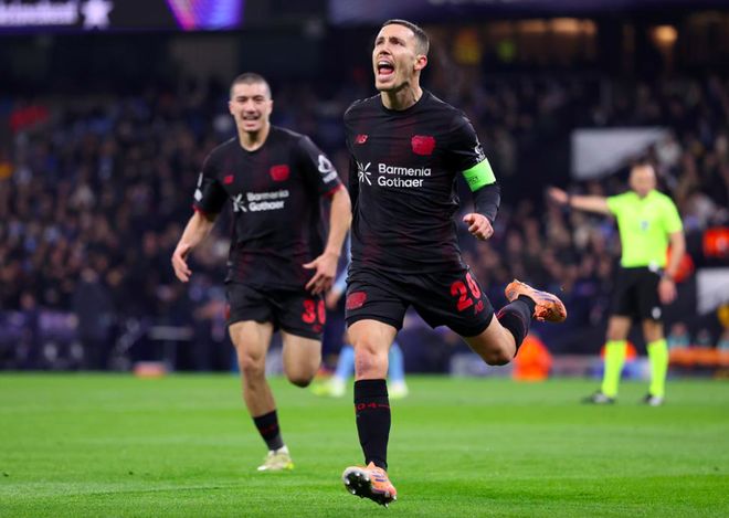 即便是瓜迪奥拉对首发阵容进行了大幅度的轮换,哈兰德、福登等都坐在场下,曼城依旧能占据场上的主动权,勒沃库森踢得相当被动。