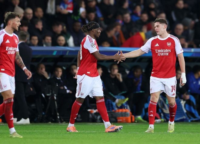 易边再战阿森纳继续加强进攻,开场仅仅1分钟,又是苏比门迪和马杜埃凯之间的连线,苏比门迪禁区左侧边上突破下底传中,后点无人防守的马杜埃凯门线前轻松头槌顶空门得手,马杜埃凯梅开二度,阿森纳2:0领先。仅仅再过9分钟,阿森纳又来了,这次到马丁内利表演,他45度角处接斯凯利传球,穿裆过人摆脱防守,持续横切到禁区前沿闪出空当后右脚大力兜射,皮球直挂球门远端死角,阿森纳3:0领先。3球领先的阿森纳随后收着踢,16岁的小将萨蒙都获得替补登场的机会。第78分钟,阿森纳差点还进球,替补登场的热苏斯禁区左侧拿球横向摆脱防守大力兜射,皮球被横梁挡了出来。最终阿森纳客场3:0大胜,豪夺欧冠6连胜,依然是唯一全胜的球队。