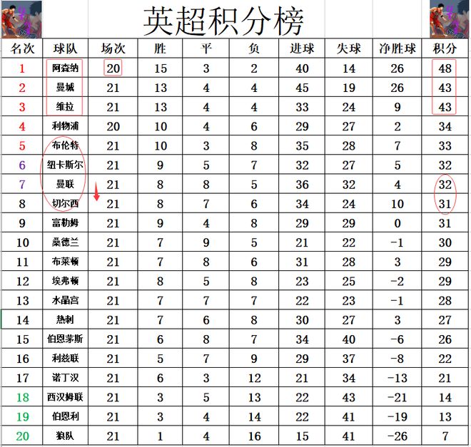 北京时间1月8日凌晨,2025-26赛季英超联赛第21轮再赛8场。经过一番鏖战,伯恩利主场2:2逼平曼联,切尔西客场1:2不敌富勒姆,曼城主场1:1战平布莱顿,利兹联客场3:4不敌纽卡斯尔,埃弗顿主场1:1平狼队,热刺客场2:3负于伯恩茅斯,布伦特福德主场3:0大胜桑德兰,阿斯顿维拉客场0:0闷平水晶宫。