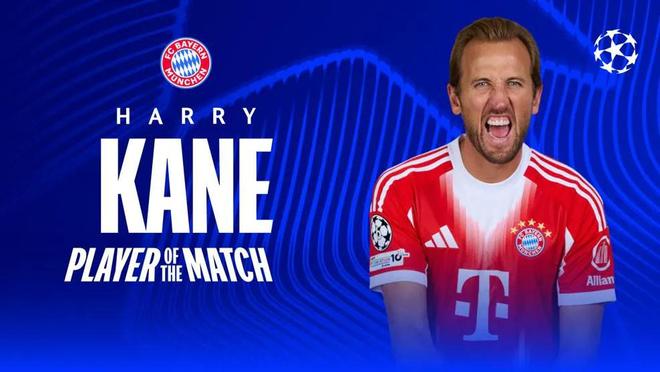 欧冠联赛阶段第7轮,拜仁慕尼黑主场2-0击败圣吉罗斯联合,此役上演梅开二度的拜仁前锋凯恩当选欧冠官方全场最佳球员。
