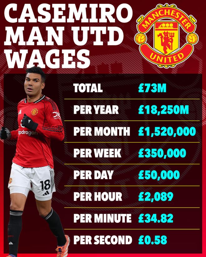 卡塞米罗一直是曼联队内收入最高的球员之一,「竞技网」的计算显示,他效力红魔4年,花费了俱乐部约1.19亿英镑。这笔钱花得值吗?不同人有不同的看法,但从老板拉爵的角度,肯定不会被视为划算的生意。