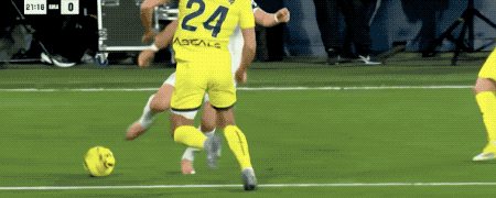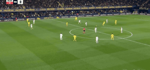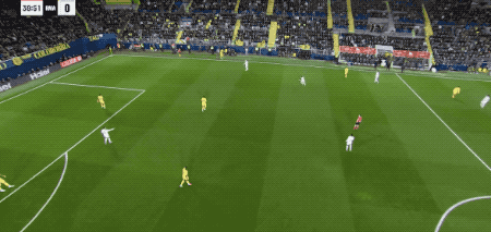 第62分钟,比利亚雷亚尔的任意球设计巧妙,莫雷诺身边无人,居然将球打高,黄潜自家球迷都摊手表达不满。