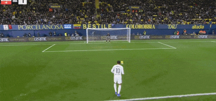 比赛结束,皇家马德里在客场击败比利亚雷亚尔!