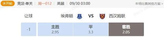 竞足 周一012 英超 埃弗顿VS西汉姆联