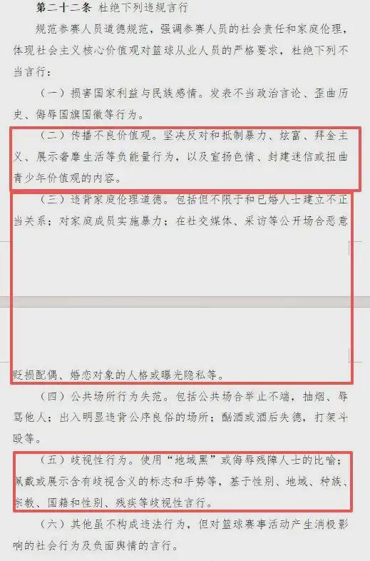 大家应该都还没有忘记,前段时间某球员被他的前女友所爆出的各种猛料吧?什么脚踏几条船,私生活极其混乱等等,并且还进行了实名举报。虽然目前还没有看到处理结果,但是中国篮协此次专门出台约束参赛人员道德规范的措施,无疑是向某些球员敲响了警钟,如果再造成不良影响,那就不可能不了了之了。