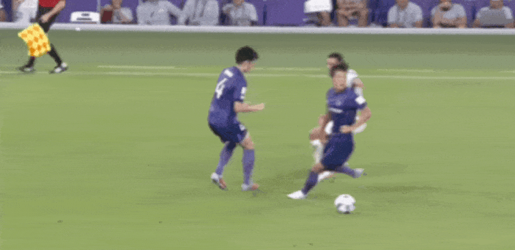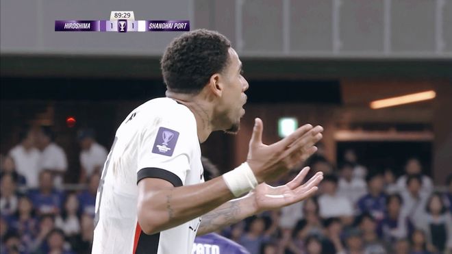 上海海港客场挑战广岛三箭,比赛来到常规时间的最后一分钟,上海海港后场断球准备快速反击,莱昂纳多一脚直塞找前场插上的古斯塔沃。古斯塔沃面对两人的夹防,为了快速摆脱防守,对抗中推倒了荒木隼人。